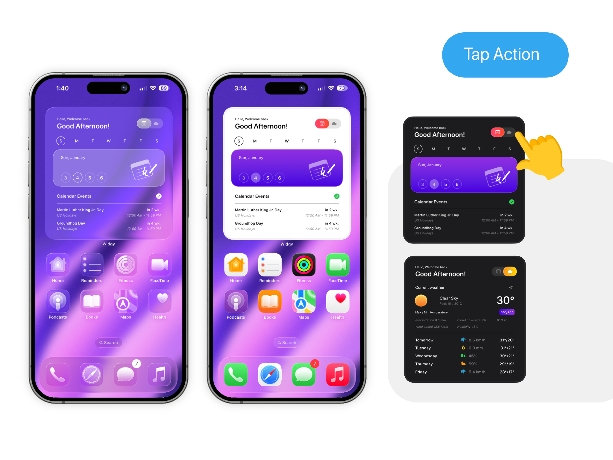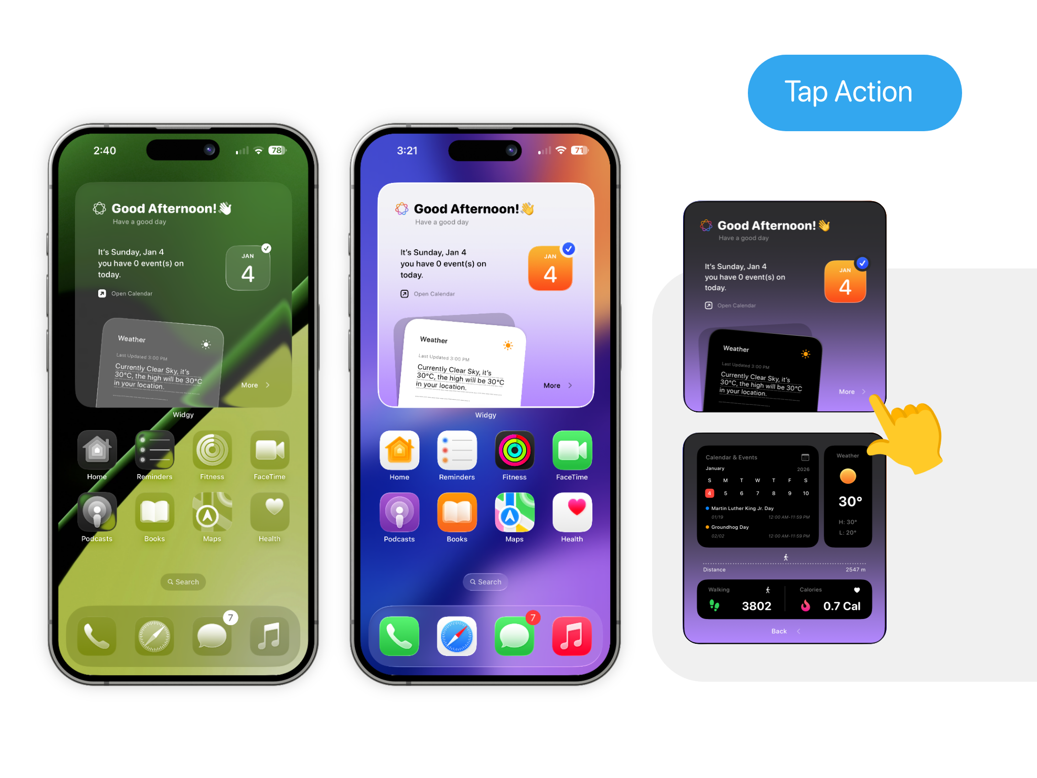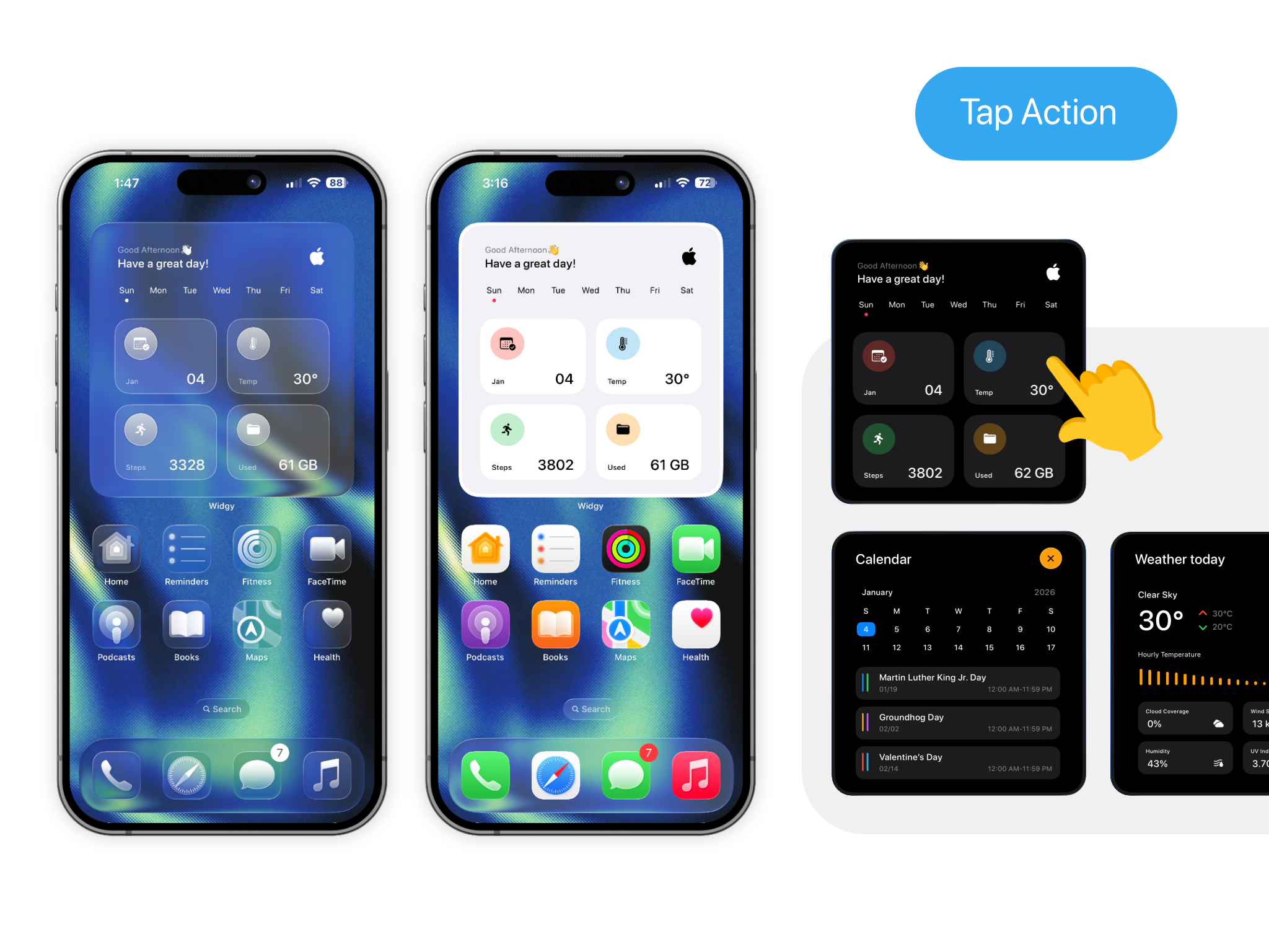 10 widgets with 5 style for Clear & Light, dark mode on iOS26